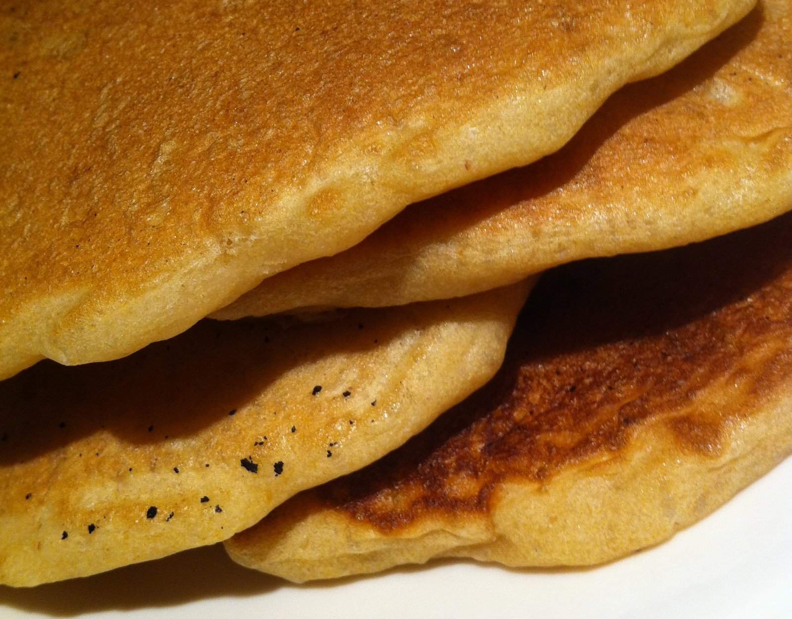 Those of you that have been keeping up know that I’ve been cultivating a sourdough starter now for the better part of two weeks. This morning, I made my first recipe, sourdough pancakes. And they were fantastic.